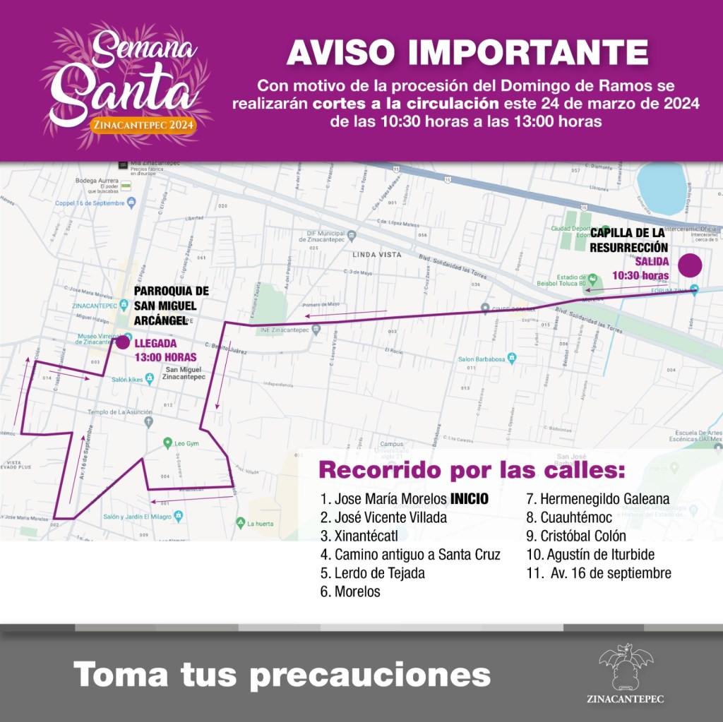 El Ayuntamiento de Zinacantepec informó que la Procesión del Silencio se llevará a cabo el próximo domingo 24 de marzo, que coincide con el Domingo de Ramos.