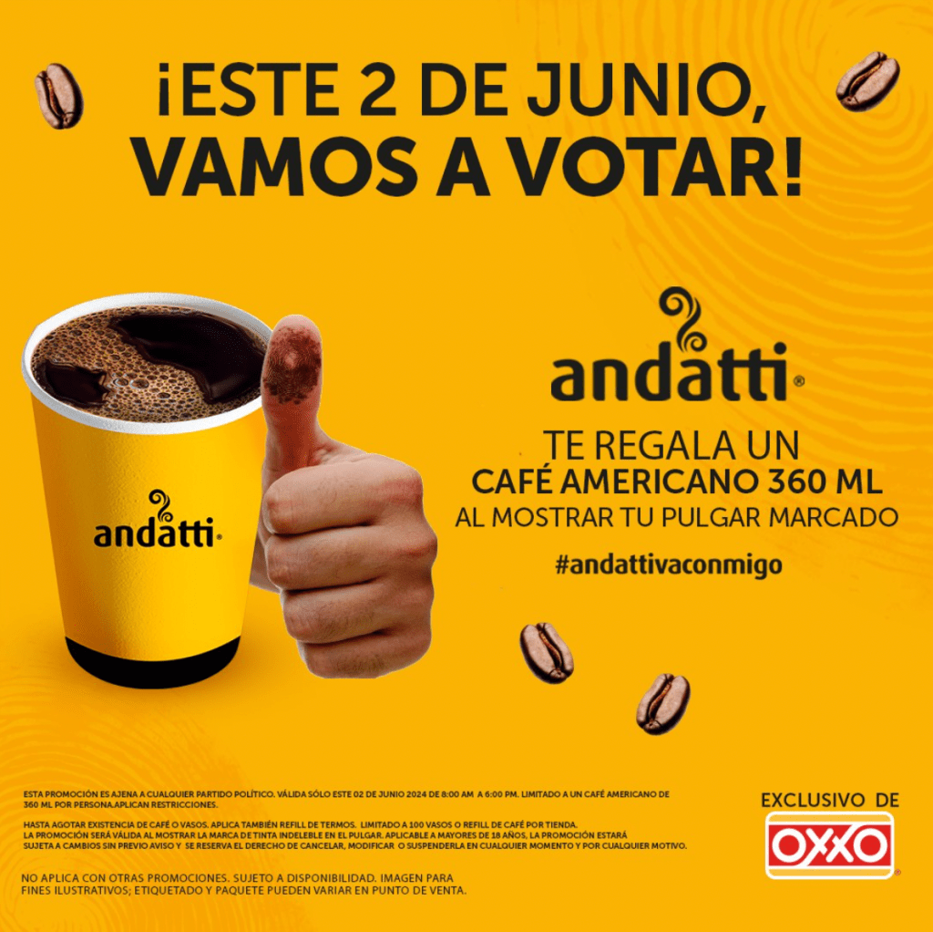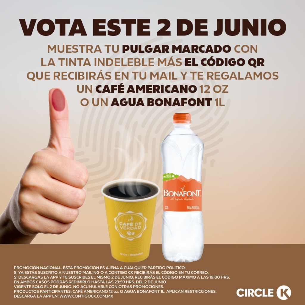 Este 2 de junio, día de las elecciones, será un café espresso americano chico. Lo único que debes hacer es ir a la sucursal más cercana, mostrar tu dedo que votaste y listo.