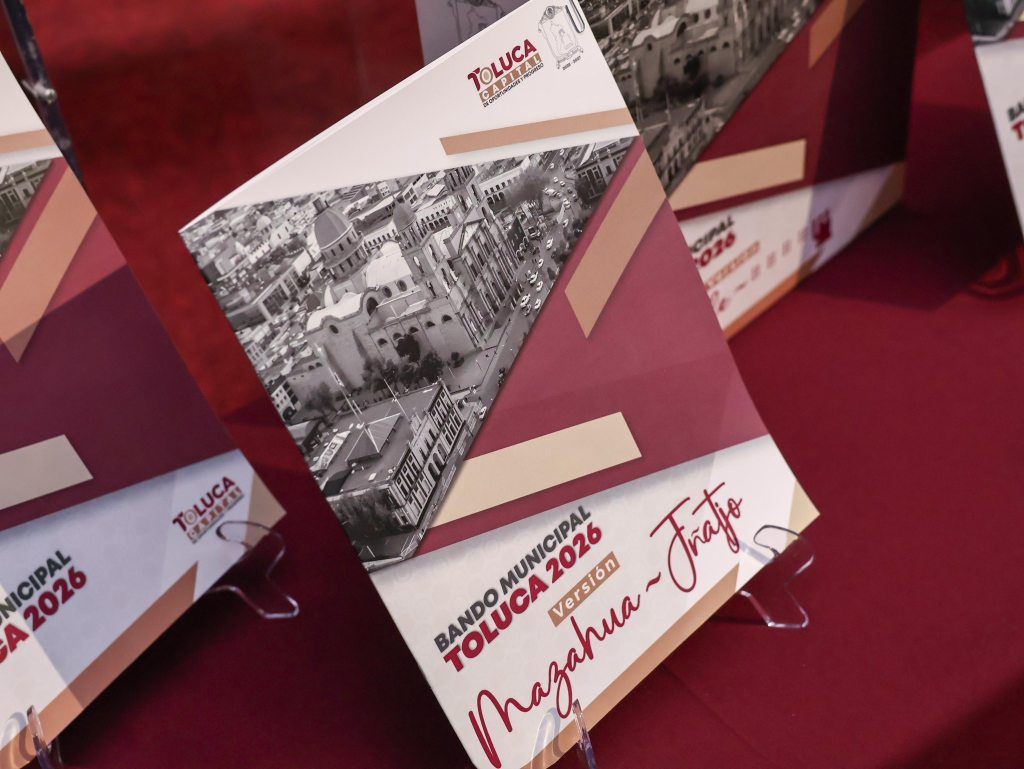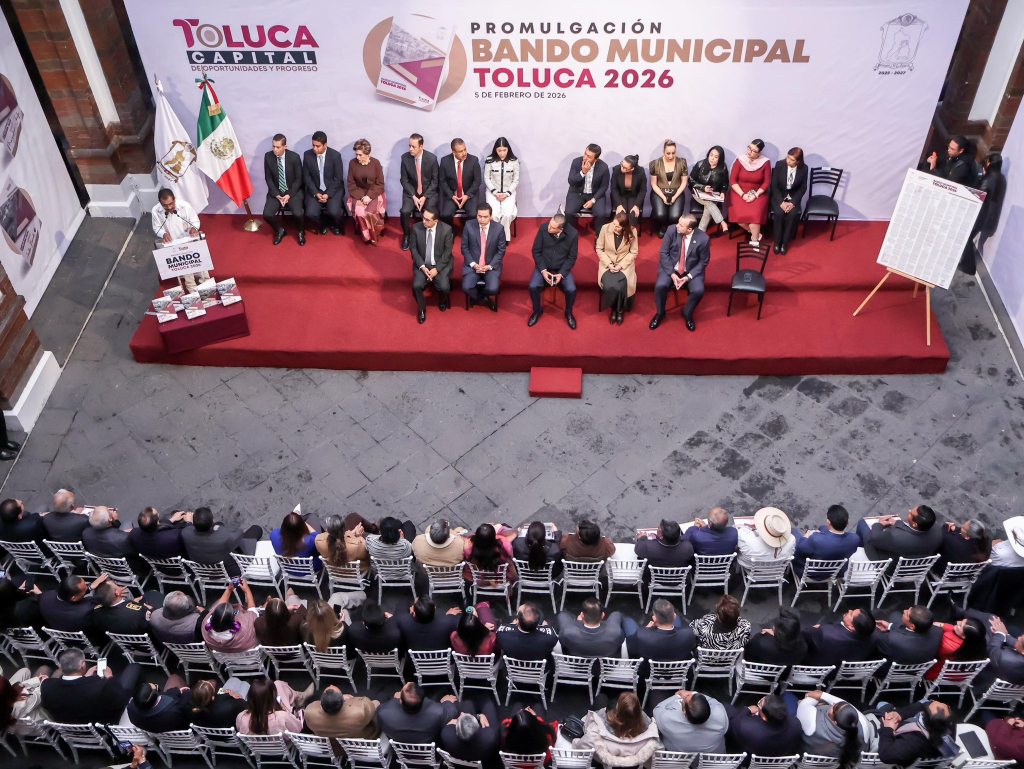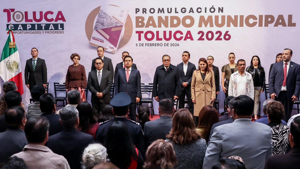 El Ayuntamiento de Toluca promulgó el Bando Municipal 2026, documento que marca las reglas de convivencia, ordenamiento y actuación del gobierno local para el próximo año. El acto, encabezado por el presidente municipal Ricardo Moreno Bastida en el marco del aniversario de la Constitución mexicana, es el primero publicado en cinco formatos —español, otomí, mazahua, braille y audiobando— para garantizar la inclusión de la ciudadanía.