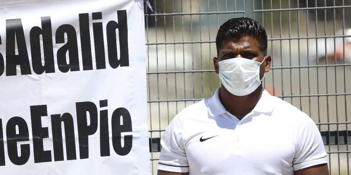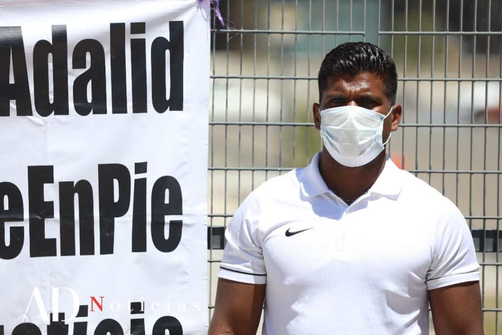 El silbante llegó acompañado de amigos y familiares, quienes colgaron mantas en uno de los accesos con las leyendas “Alto al racismo, Guerrero está con Adalid” y “#TodosSomosNegros”.