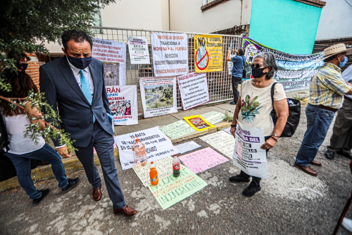 Los manifestantes fueron recibidos por Rogelio García Maldonado, representante del Gobierno Federal en el Estado de México; Alfonso Palafox de la Dirección de Desarrollo Urbano del Ayuntamiento de Naucalpan y Ernesto Marín Mercado SEMARNAP para entablar una mesa de negociación.