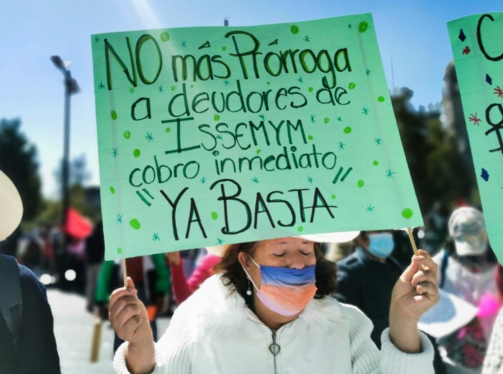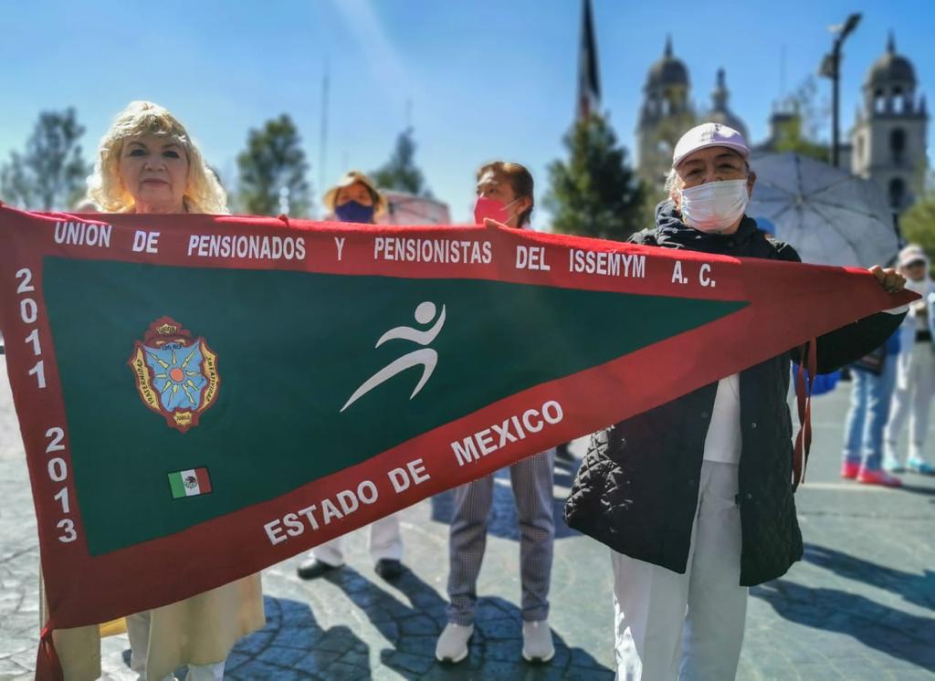 Alrededor de 300 integrantes de la Unión de Pensionados y Pensionistas del ISSEMyM (UPPIAC) protestaron este jueves en la capital de Toluca. Demandaron la participación de su representante en el Consejo Directivo del ISSEMyM, el pago de pensiones justa y a tiempo, mejora de servicios y rechazaron la aplicación de distintos artículos de la ley del instituto.