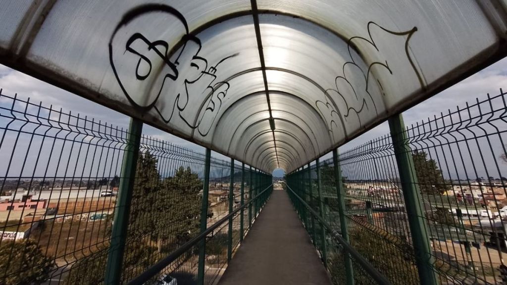 Este puente atraviesa la vialidad rápida Toluca-Palmillas, pero los vecinos explicaron que en muchas ocasiones, para evitar asaltos y robos, prefieren cruzar corriendo. En las noches es cuando mayor peligro perciben.