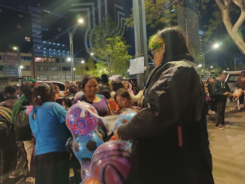 A las 23:30 horas del 5 de enero llegaron al primer lugar de su recorrido: la Plaza de la Soledad, en la alcaldía Cuauhtémoc. “Ya llegaron los Reyes, avisen a los morros”, gritan los punks. Decenas de infantes de Nicaragua, Cuba, Haití y Venezuela salen de las casas de campaña y corren hacia ellos. Al menos la mitad sin llevar un suéter puesto y en espera de recibir los obsequios donados en los municipios de Naucalpan, Nicolás Romero, Atizapán y de Ecatepec.