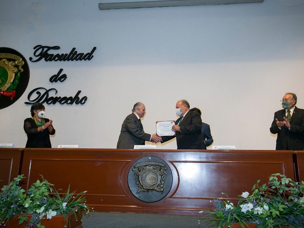 El presidente de la Confede, Máximo Carvajal, entregó la placa conmemorativa de la reacreditación al secretario de Docencia de la UAEMex; en el auditorio “Isidro Fabela Alfaro” de la Facultad de Derecho de la UAEMex.