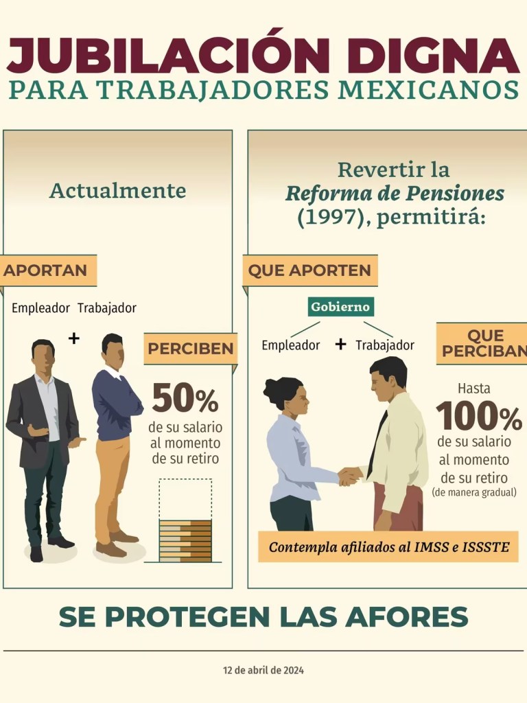 El presidente López Obrador abordó este tema en su conferencia del viernes 19 de abril, reiterando que el objetivo principal es beneficiar a los trabajadores asegurándoles el 100 por ciento de su pensión basado en su último salario. Luisa María Alcalde proporcionó más detalles al respecto: