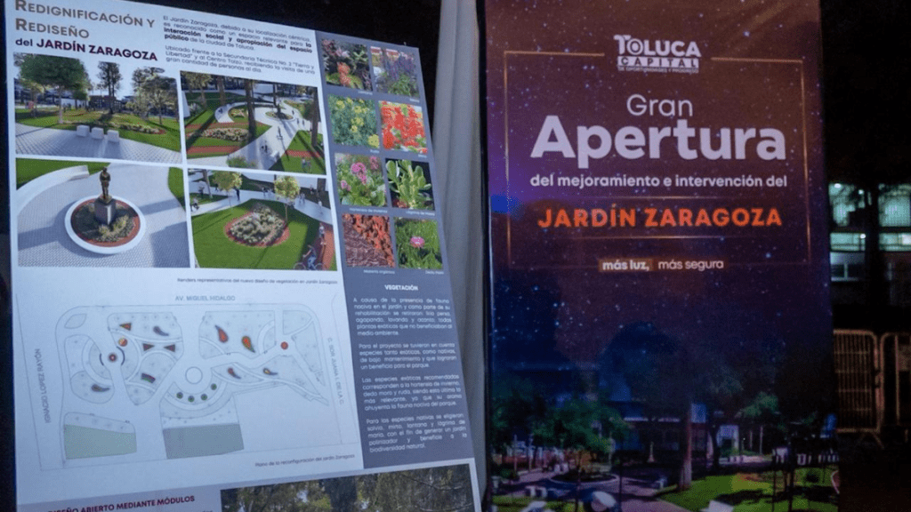 El Presidente Municipal, Ricardo Moreno, entregó a toda la comunidad toluqueña el Jardín Zaragoza que luce rehabilitado, con nuevas imagen, áreas verdes y limpio. Además, se encendieron 70 luminarias, las cuales se suman a las cinco mil inteligentes en funcionamiento. Esto tiene el propósito de fortalecer la seguridad y la convivencia entre la comunidad estudiantil, trabajadores y vecinos de la delegación Centro Histórico.