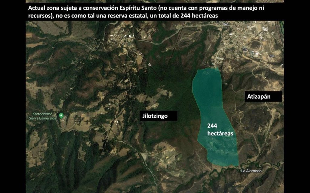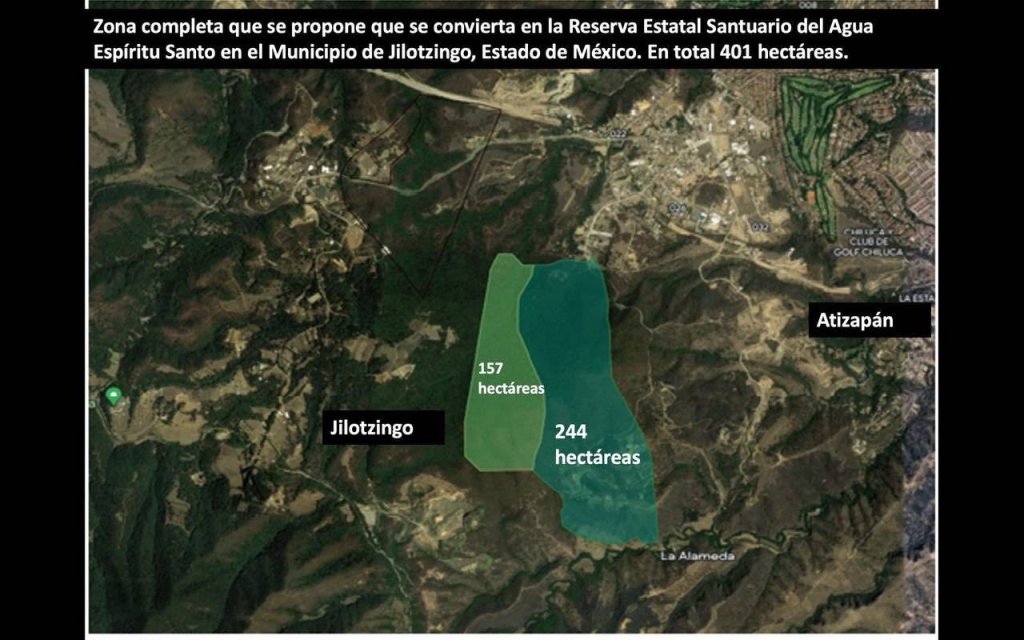 De acuerdo con un comunicado, con el fin de proteger la Reserva Estatal Espíritu Santo, en el municipio de Jilotzingo, el diputado Guillermo Zamacona Urquiza presentó un Punto de Acuerdo en el que se exhorta a la Secretaría de Medio Ambiente y Desarrollo Sostenible del Edomex a declararla como Reserva Estatal Santuario del Agua «Espíritu Santo», con una extensión de 401 hectáreas.