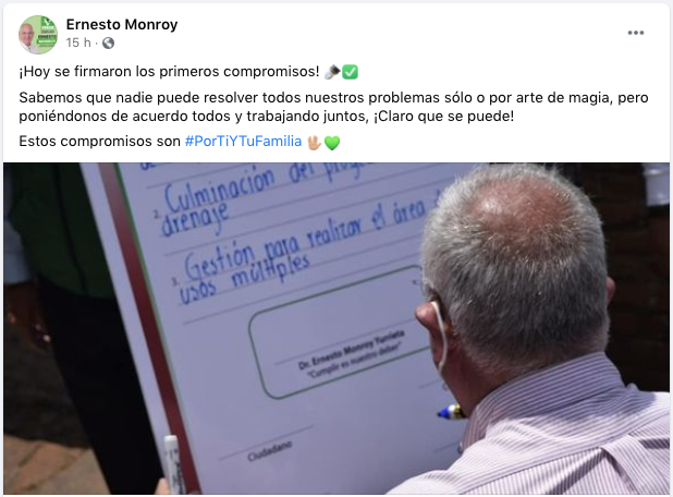 Monroy, también candidato por la coalición “Juntos Haremos Historia” conformada por los partidos Morena y PT, presumió en sus redes sociales la firma de sus primeros compromisos de campaña en el Cóporo, los cuales se alejan del tema legislativo y se acercan más a las cuestiones de obras y servicios públicos municipales como pavimentaciones.