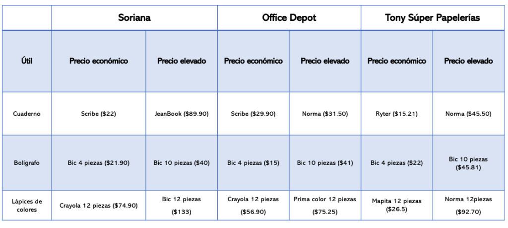 La Secretaría de Educación Pública (SEP) mandó la lista de útiles para los alumnos de preescolar, primaria y secundaria. Por ello, la Procuraduría Federal de Consumidor (Profeco) estableció los precios de venta en el mercado de acuerdo con la marca, el modelo y la presentación de cada artículo.