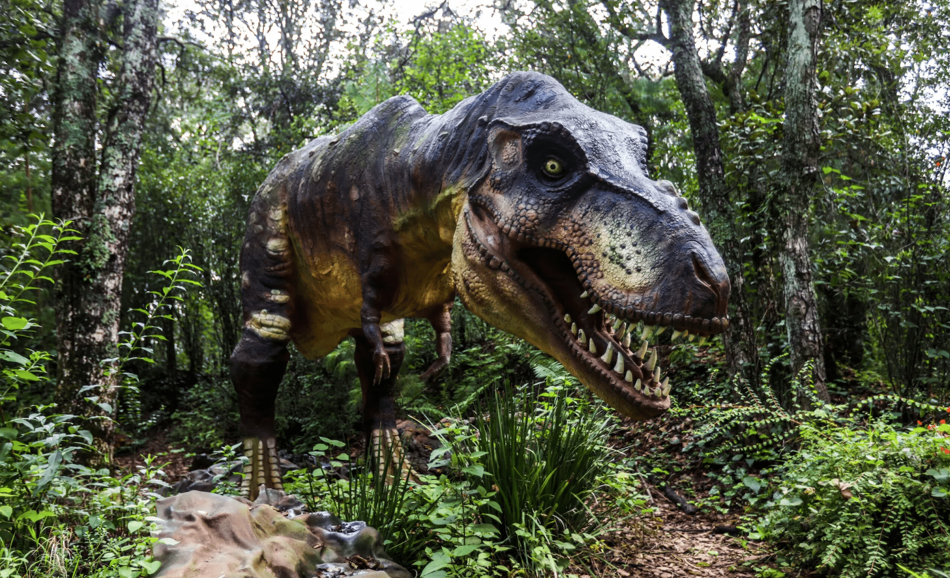 Uno de los atractivos a los que también tienen acceso las y los visitantes es Tierra de Dinosaurios en el que se pueden conocer diferentes hipótesis acerca de la vida y extinción de estas especies en el planeta.