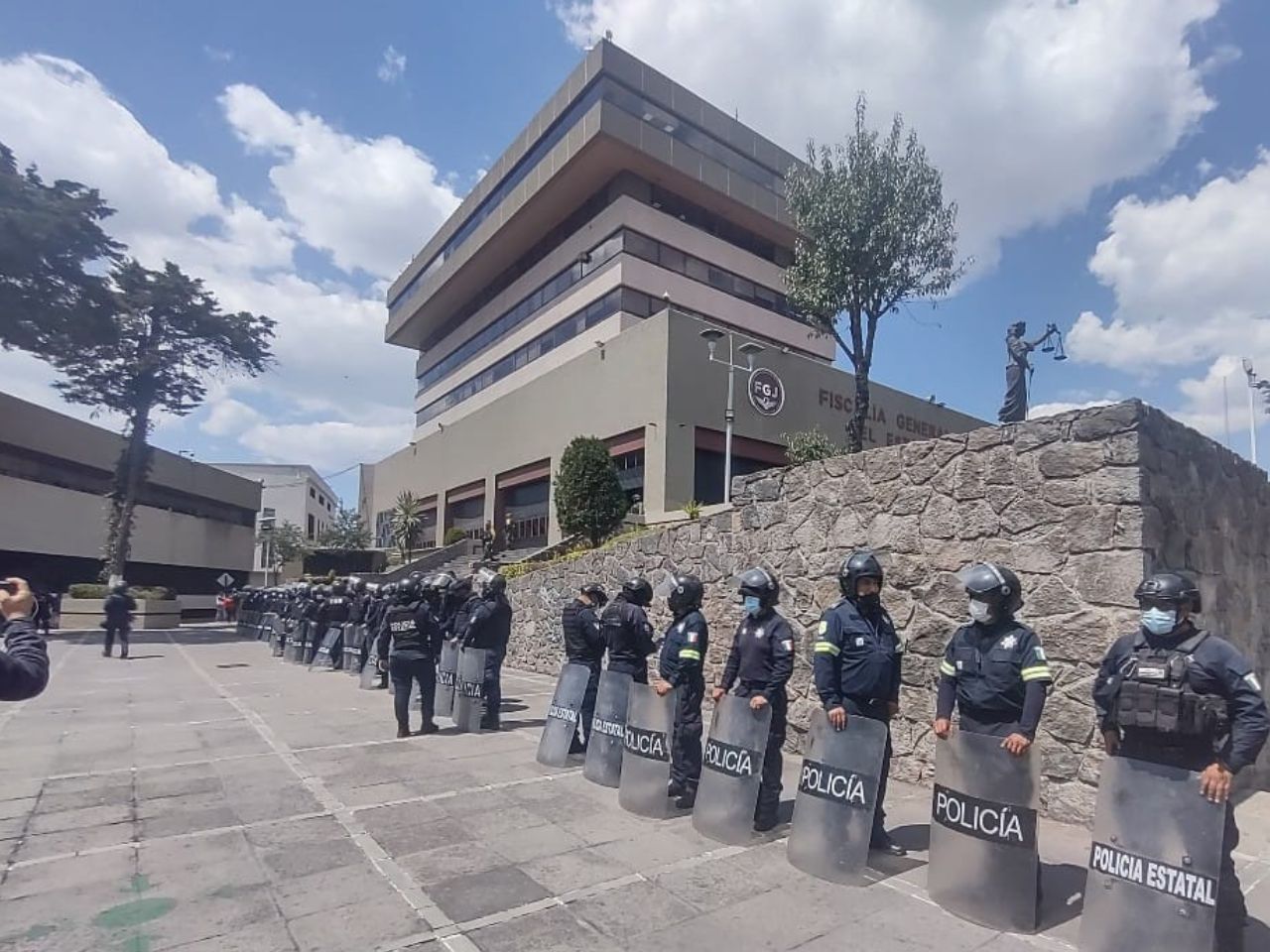 Elementos de las Fuerzas de Apoyo y Reacción (FAR) c perimetral en el edificio central de la Fiscalía General de Justicia.