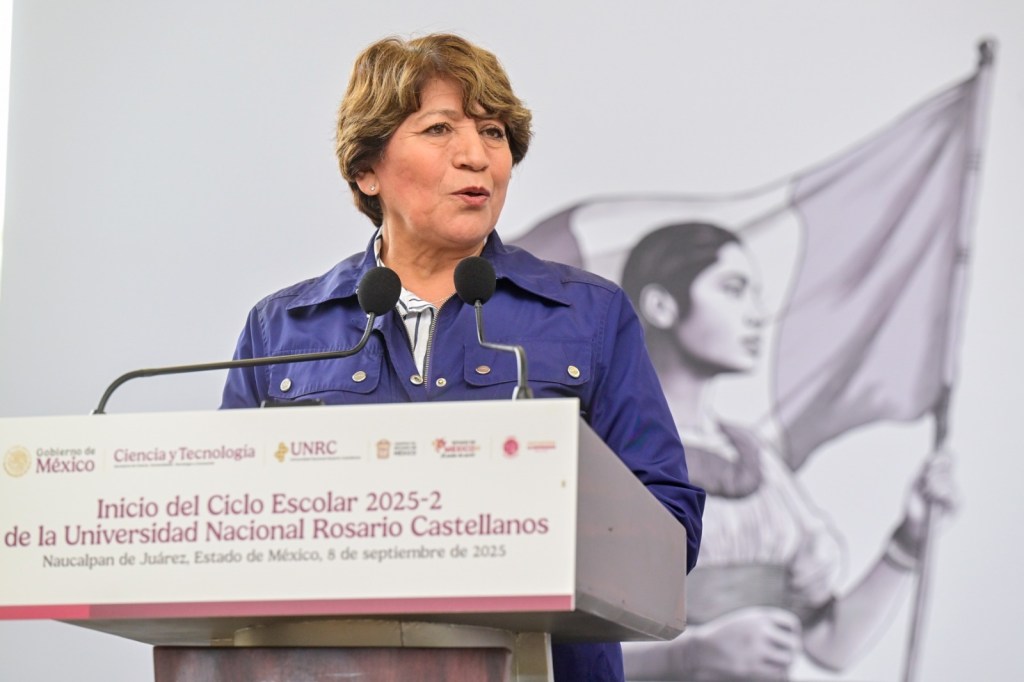 La secretaria de Ciencia, Humanidades, Tecnología e Innovación (Secihti), Rosaura Ruiz Gutiérrez; la gobernadora Delfina Gómez Álvarez, y la rectora de la Universidad Nacional Rosario Castellanos (UNRC), Alma Herrera Márquez, inauguraron la nueva unidad académica en Naucalpan, con la que inició el ciclo escolar 2025-2.