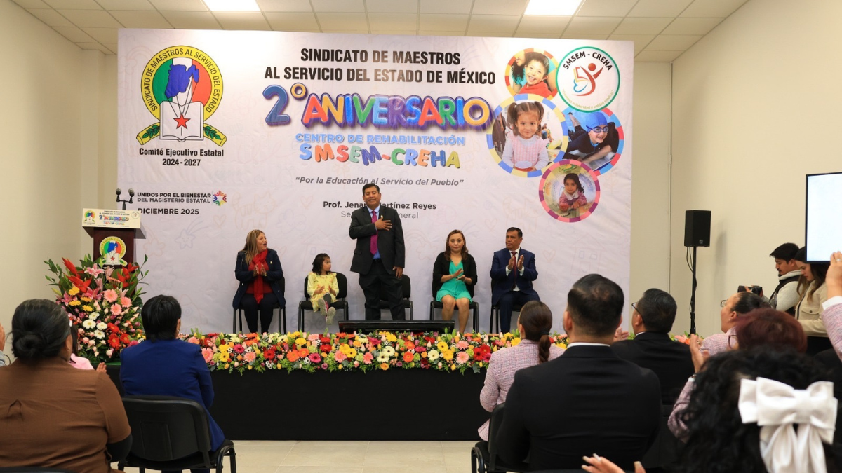 El Sindicato de Maestros al Servicio del Estado de México (SMSEM) celebró el segundo aniversario del Centro de Rehabilitación SMSEM-CREHA con la Semana de la Discapacidad, un programa académico y cultural diseñado para promover respeto, inclusión y atención especializada para niñas y niños con discapacidad.