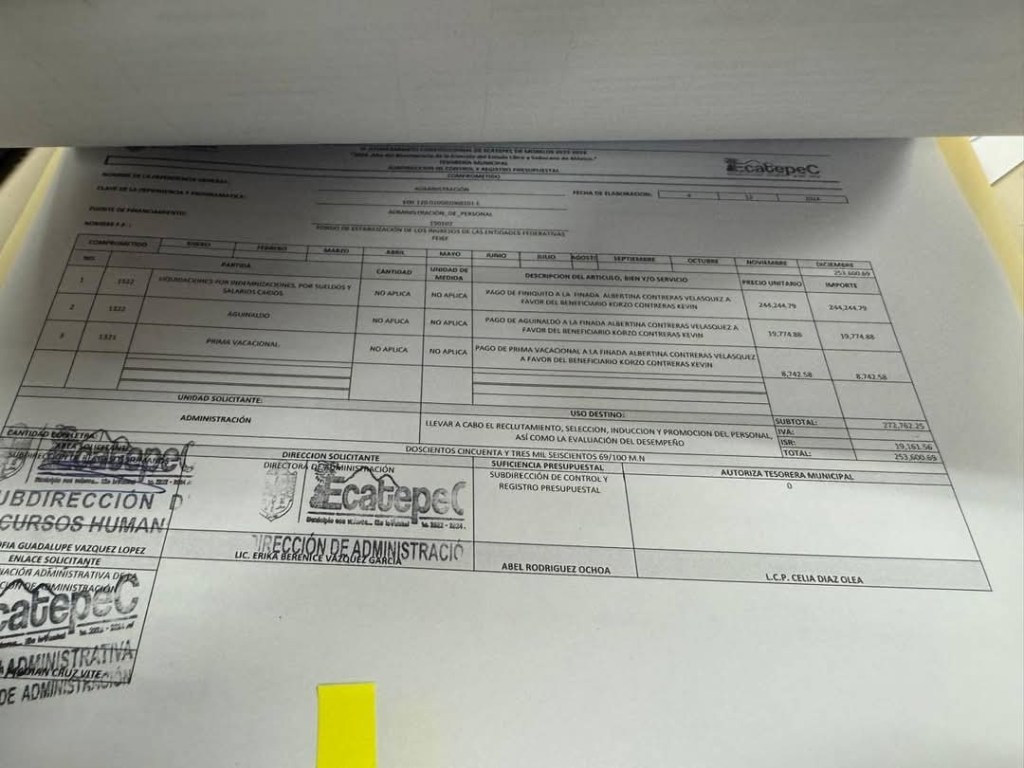 Durante su primera conferencia de prensa, Cisneros también denunció finiquitos millonarios otorgados a familiares de Vilchis, entre ellos Demetrio Contreras (1.7 millones de pesos), Faustino Contreras (1.1 millones) y Marín Contreras (1.6 millones), quienes tenían plazas en diferentes áreas del ayuntamiento, algunos sindicalizados.