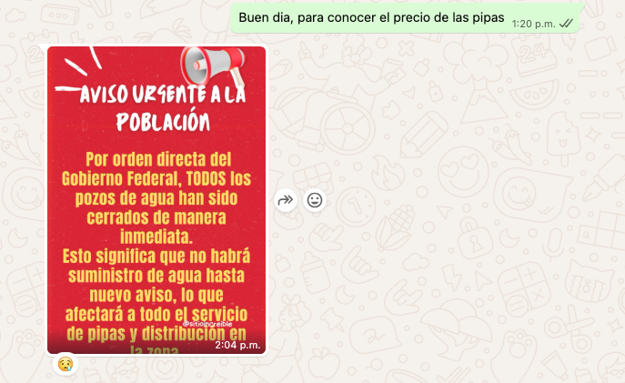 AD Noticias fue en búsqueda de pipas de agua en Toluca, Huixquilucan, Ecatepec, Zinacantepec, pero no encontró ninguna en operación. Los prestadores del servicio informaron que la suspensión responde a órdenes del Gobierno Federal y forma parte del proceso de regularización derivado de la Operación Caudal. Incluso, señalaron que desconocen el precio al que se ofrecerá el agua una vez que se restablezca el servicio.