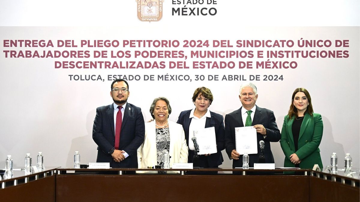 Edomex·Noticias Gobernadora Delfina Gómez recibe Pliego Petitorio del Convenio de Prestaciones 2024 del SUTEYM adnoticiasedomex abril 30, 2024