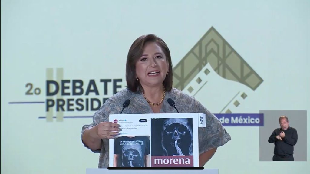 Uno de los momentos más álgidos fue cuando Xóchitl Gálvez calificó de ‘narcocandidata’ a Claudia Sheinbaum, en el marco de las acusaciones del llamado cartel inmobiliario. Al desmentir la existencia de este problema en la alcaldía Benito Juárez, la candidata de la oposición la llamó de esa manera y le dijo que si eso hubiera sido verdad, hubiera mandado a derribar los edificios y pisos irregulares.