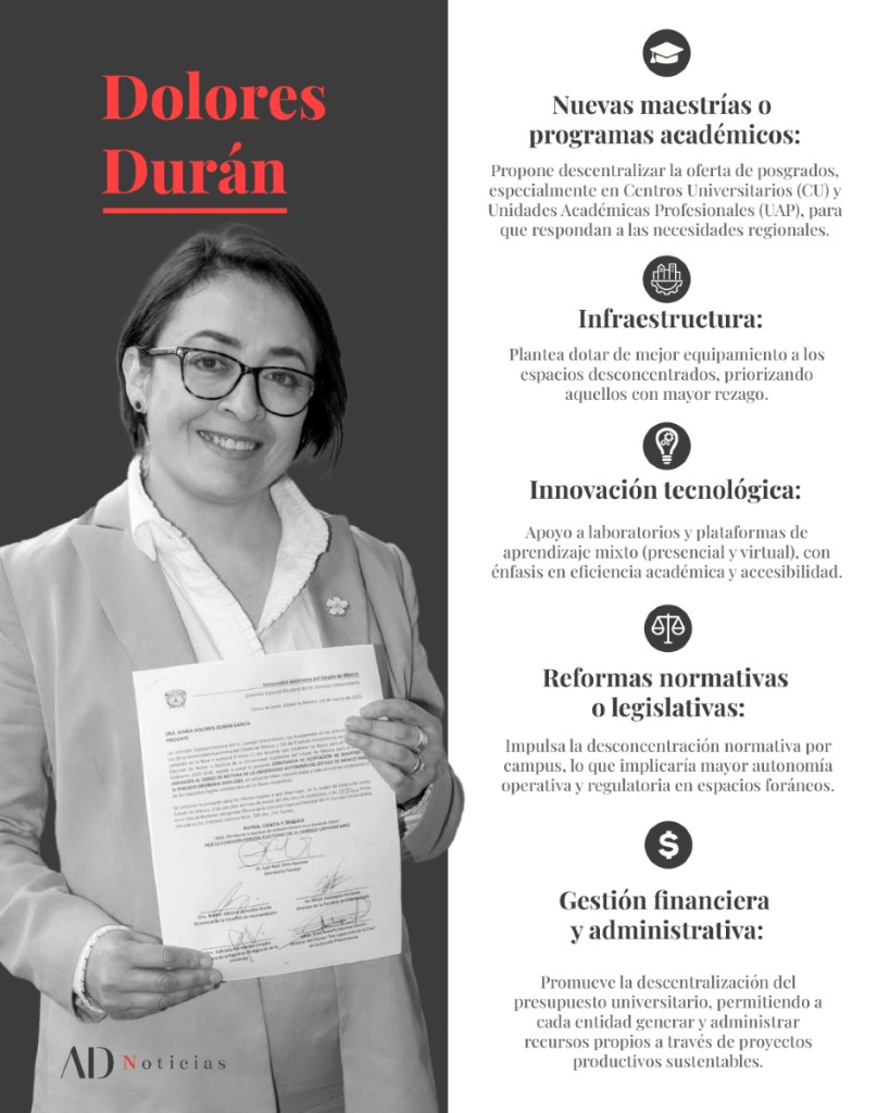 Si bien, únicamente 110 personas de la comunidad universitaria serán las encargadas de votar para elección de rectora de la UAEMéx, es importante conocer lo que cada una de las candidatas propone en su plan de trabajo para la máxima casa de estudios del Estado de México. Te dejamos las imágenes con lo más relevante de las propuestas.
