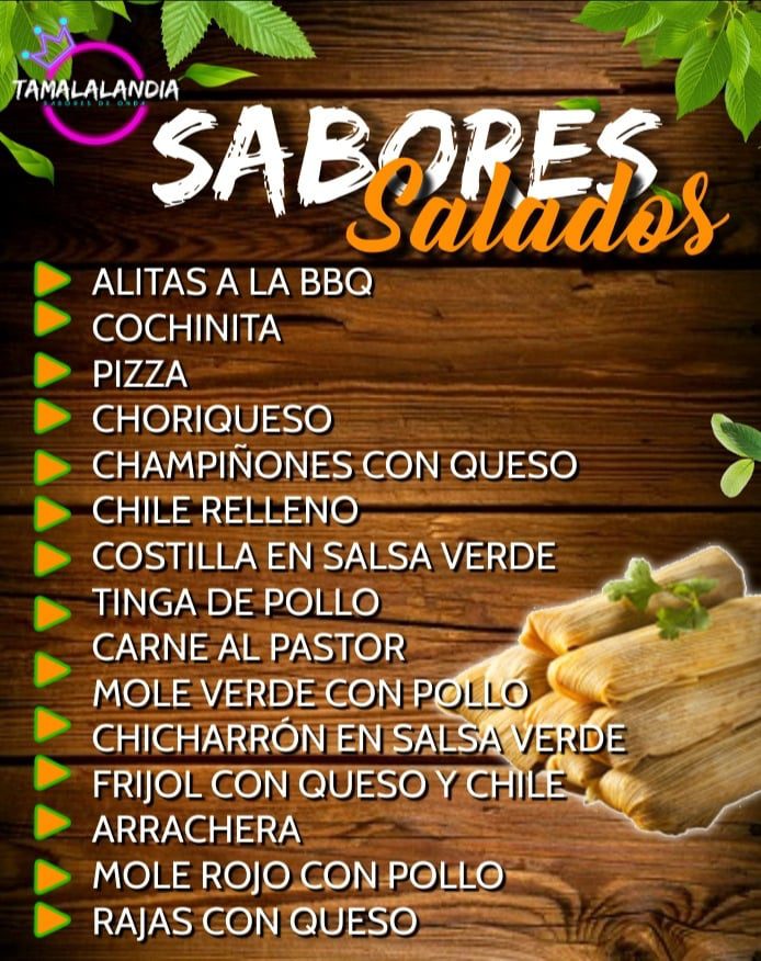 Aquí puedes pedir los típicos tamales verdes con pollo, guajillo con pollo, verde con cabeza, guajillo con cabeza, rajas con queso, mole rojo con pollo y los deliciosos canarios.