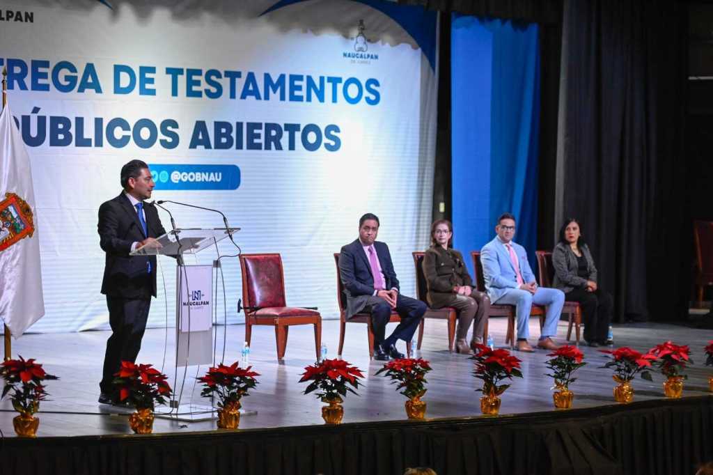 Durante la entrega de 820 documentos de este tipo en el Teatro Bicentenario, la presidenta municipal Angélica Moya aseguró que «la familia es lo que nos une como naucalpenses, hoy con estos testamentos les estamos mandando un mensaje contundente de que queremos su seguridad, protegerlos y mostrarles nuestro amor, eso hay que festejarlo».