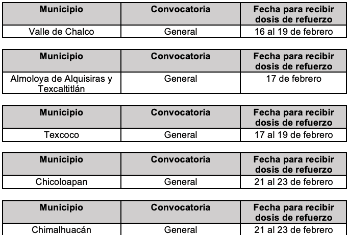 Del lunes 14 al miércoles 23 de febrero aplicarán la dosis de refuerzo a los adultos de 40 a 49 años en 51 municipios de la entidad.