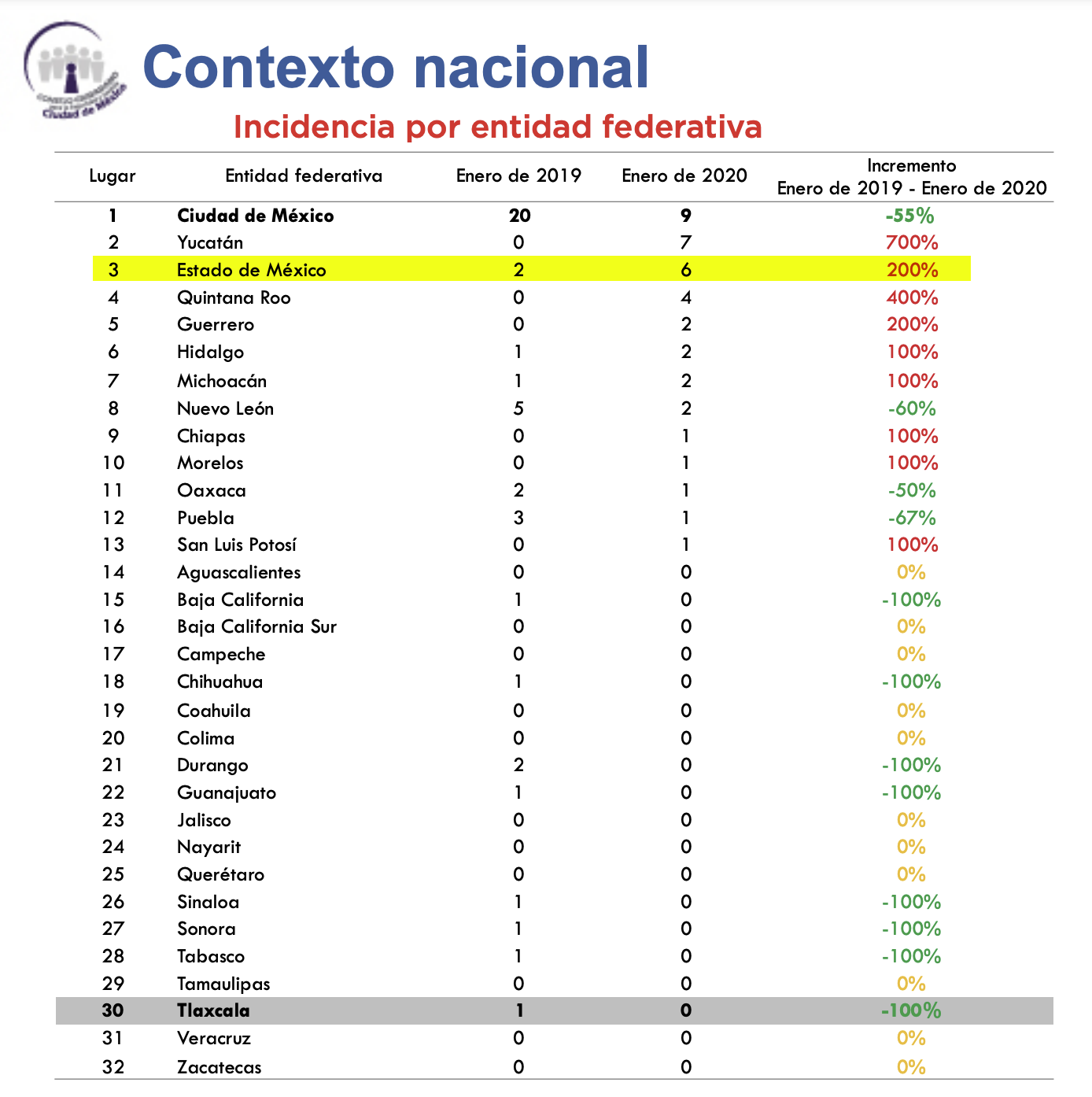 Este informe señaló que de enero de 2019 a enero de 2020, la entidad mexiquense tuvo un incremento de 200 por ciento.