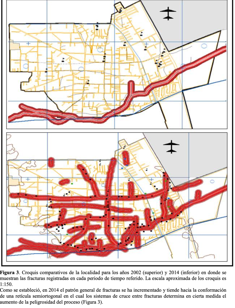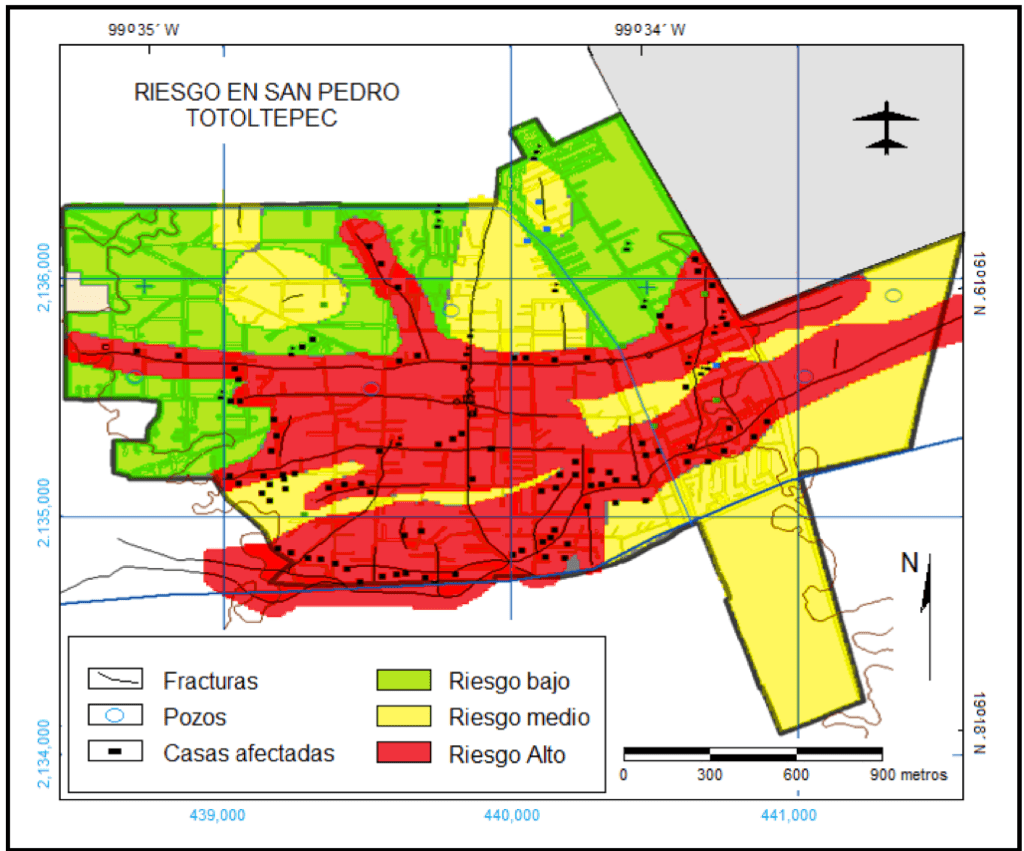 Un problema similar se identifica en el estudio “Cuantificación espacial del daño socioeconómico por subsidencia diferencial en santa Ana Tlapaltitlán, Toluca, México”, en donde se concluye que el problema de hundimientos ha traído, al menos hasta el año pasado, daños en 152 viviendas, pérdidas económicas por $23 millones 272 mil 627 pesos y 14 mil 518 personas expuestas , razón por la cual se concluye que resulta importante asociar la amenaza de hundimiento como un factor de riesgo de desastre importante en el área.