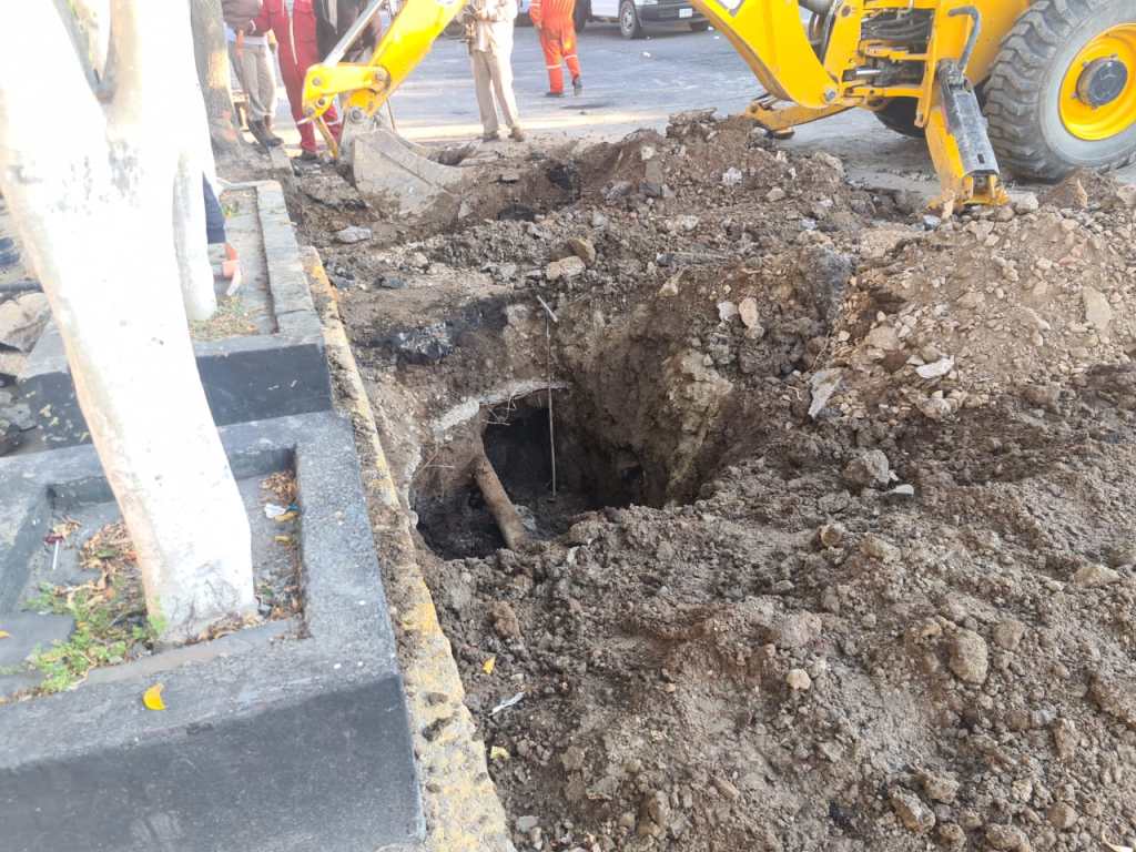 La Coordinación General de Protección Civil y Gestión del Riesgo del Estado de México, junto con Pemex y Bomberos de Nezahualcóyotl, sellan una toma clandestina de hidrocarburos en la colonia Campestre Guadalupana.
