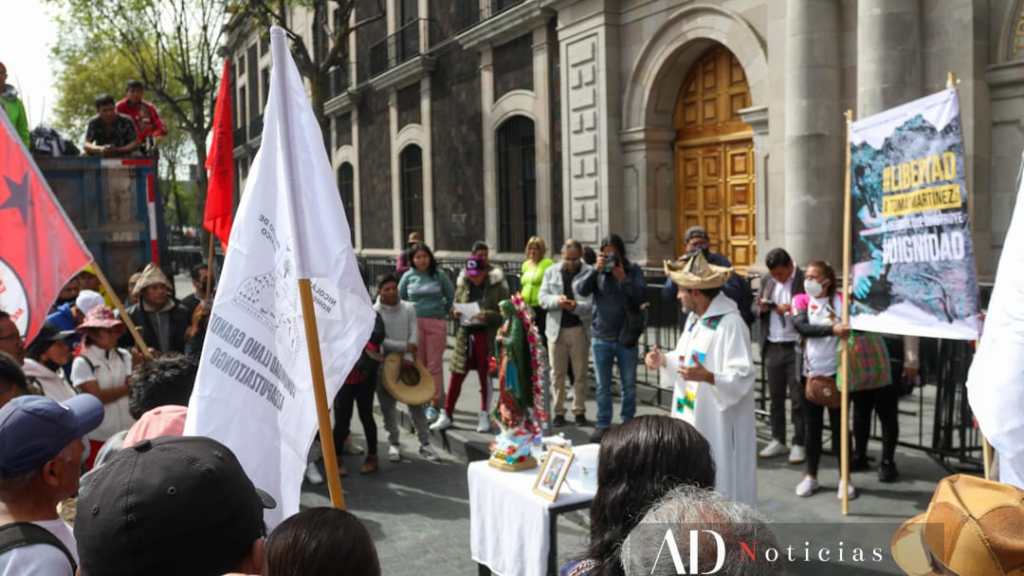 Pobladores de la comunidad indígena de Llano Grande Azcapotzaltongo, municipio de Nicolás Romero, Estado de México (Edomex), se manifestaron frente al Poder Judicial mexiquense para exigir la libertad de Tomás Martínez Mandujano, albañil injustamente preso por homicidio.