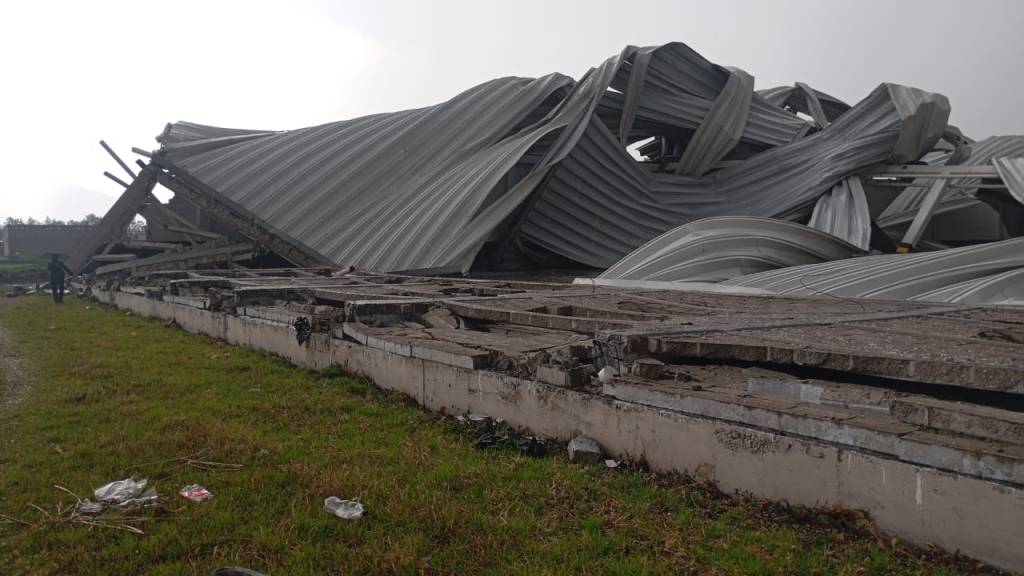 En Ejidos de Santiago Miltepec colapsó una bodega, además de que fueron arrancados por los fuertes vientos techos de lámina de diversas viviendas.