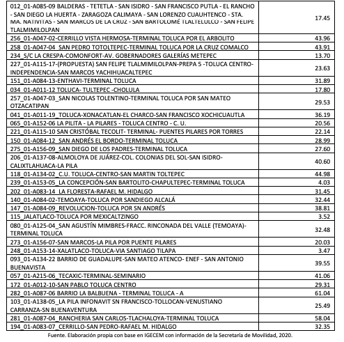 Por su parte, la Secretaría de Movilidad del Estado de México señala que, en 2020, el municipio disponía de 254 rutas de transporte público de mediana capacidad, cubriendo poco más del 90% del territorio urbano y suburbano.