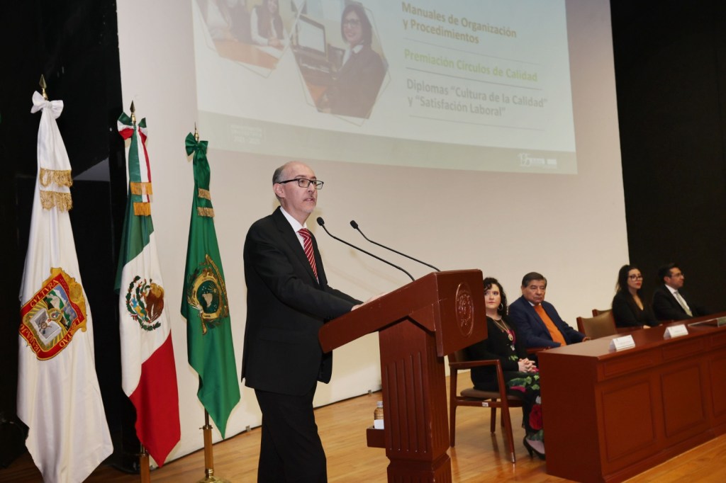 El rector Carlos Eduardo Barrera Díaz afirmó que la Universidad Autónoma del Estado de México (UAEMex) se compromete a la búsqueda de la excelencia. Además, señaló que la calidad es un principio fundamental que guía los esfuerzos de los universitarios diariamente. Estas declaraciones surgieron después de que la UAEMex recibiera el Certificado al Sistema de Gestión en la Norma ISO 9001:2015 otorgado por American Trust Register S.C.