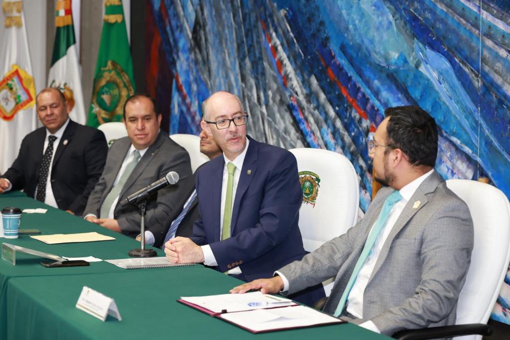 En el Torreón de la Identidad Universitaria del Edificio de Rectoría y en compañía del titular de la CGPCyGIR, el rector de la Autónoma mexiquense, Carlos Eduardo Barrera Díaz, destacó que el trabajo conjunto entre ambas instituciones representa una extensión del conocimiento y el compromiso de salvaguardar la vida de las y los mexiquenses.