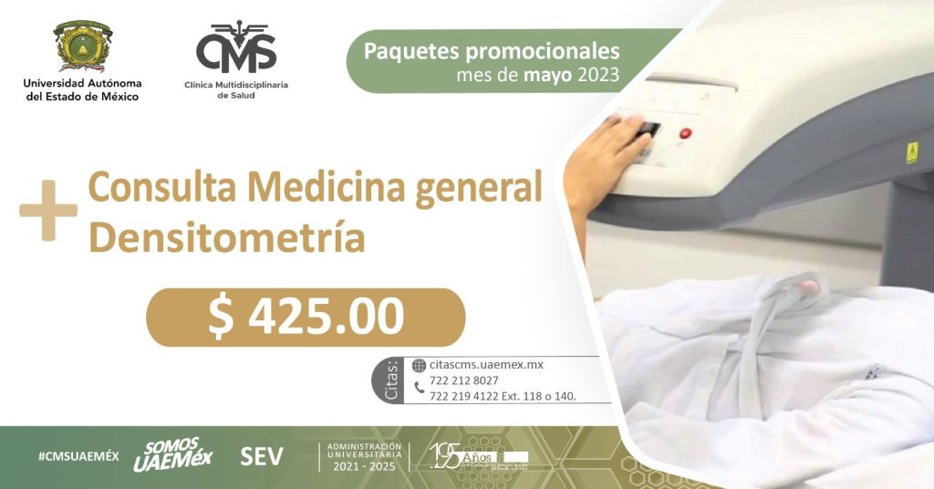 - Consulta de medicina general y densitometría, 425 pesos.