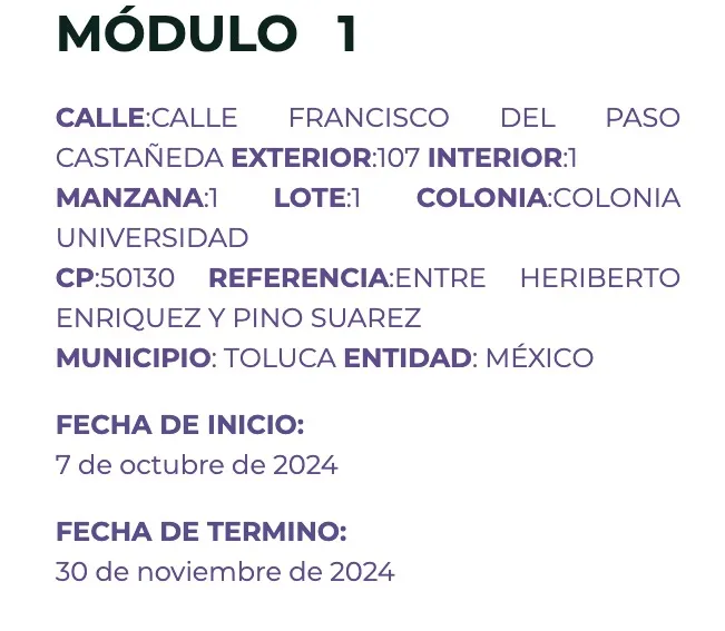 Ubicación de los módulos en Toluca
