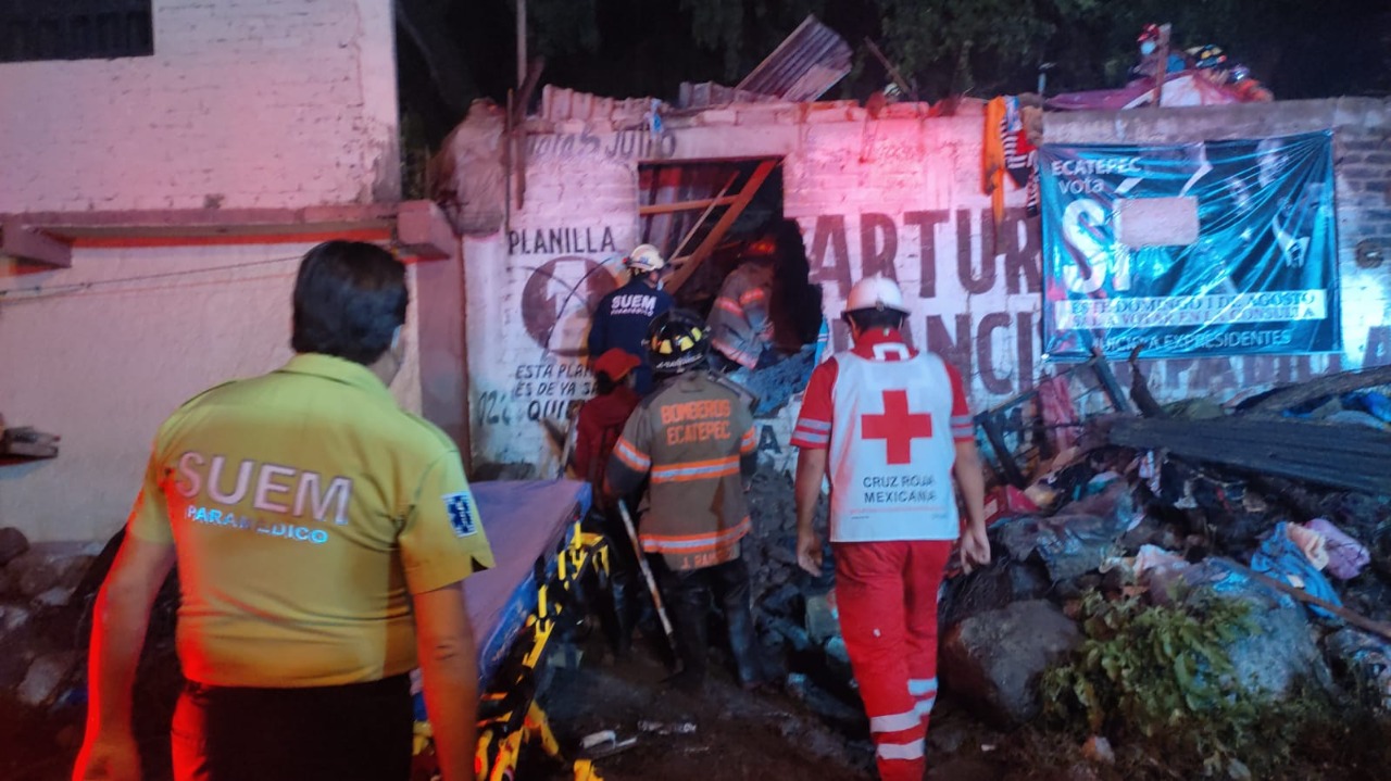 Un derrumbe de casi dos toneladas de tierra y rocas dañó dos viviendas y lesionó a un hombre en la colonia «La Palma», en Ecatepec, los cuales fueron atendidos por Elementos de Protección Civil y Bomberos.