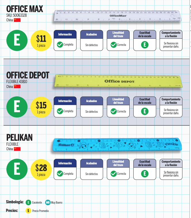Reglas: acabados, linealidad del trazo, exactitud de la escala y comportamiento a la flexión.