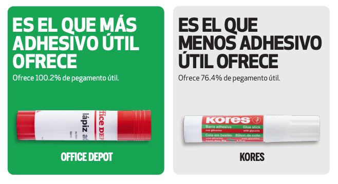 Barras adhesivas: comparación del adhesivo declarado contra el adhesivo útil.
