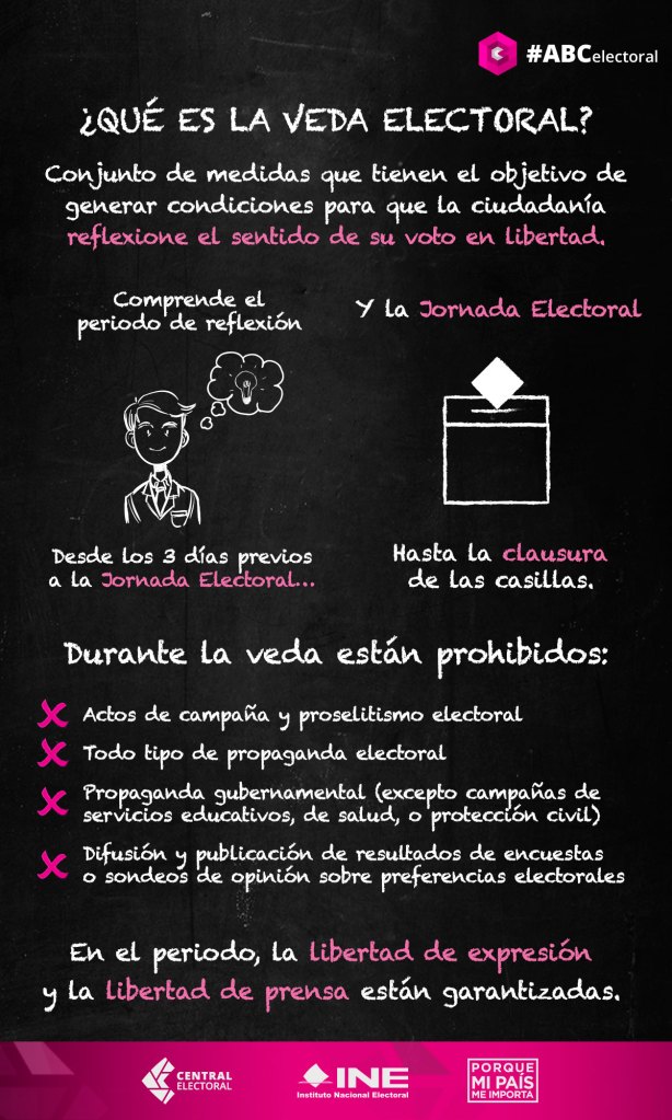 De acuerdo con el Instituto Nacional Electoral, se trata de un conjunto de medidas que tienen el objetivo de generar condiciones para que la ciudadanía reflexione su voto en libertad.
