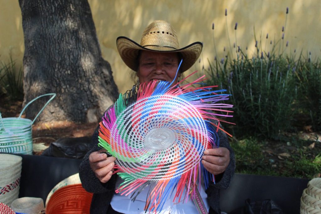 Leonarda Martínez, mujer de la tercera edad, debe acudir todos los días al centro de Toluca para colocar su puesto frente a la Iglesia del Carmen, donde vende artesanías hechas con palma real. Ella busca seguir manteniendo el negocio que heredó de su familia, pese al incremento del costo de la palma, y el cobro de piso de manera irregular.