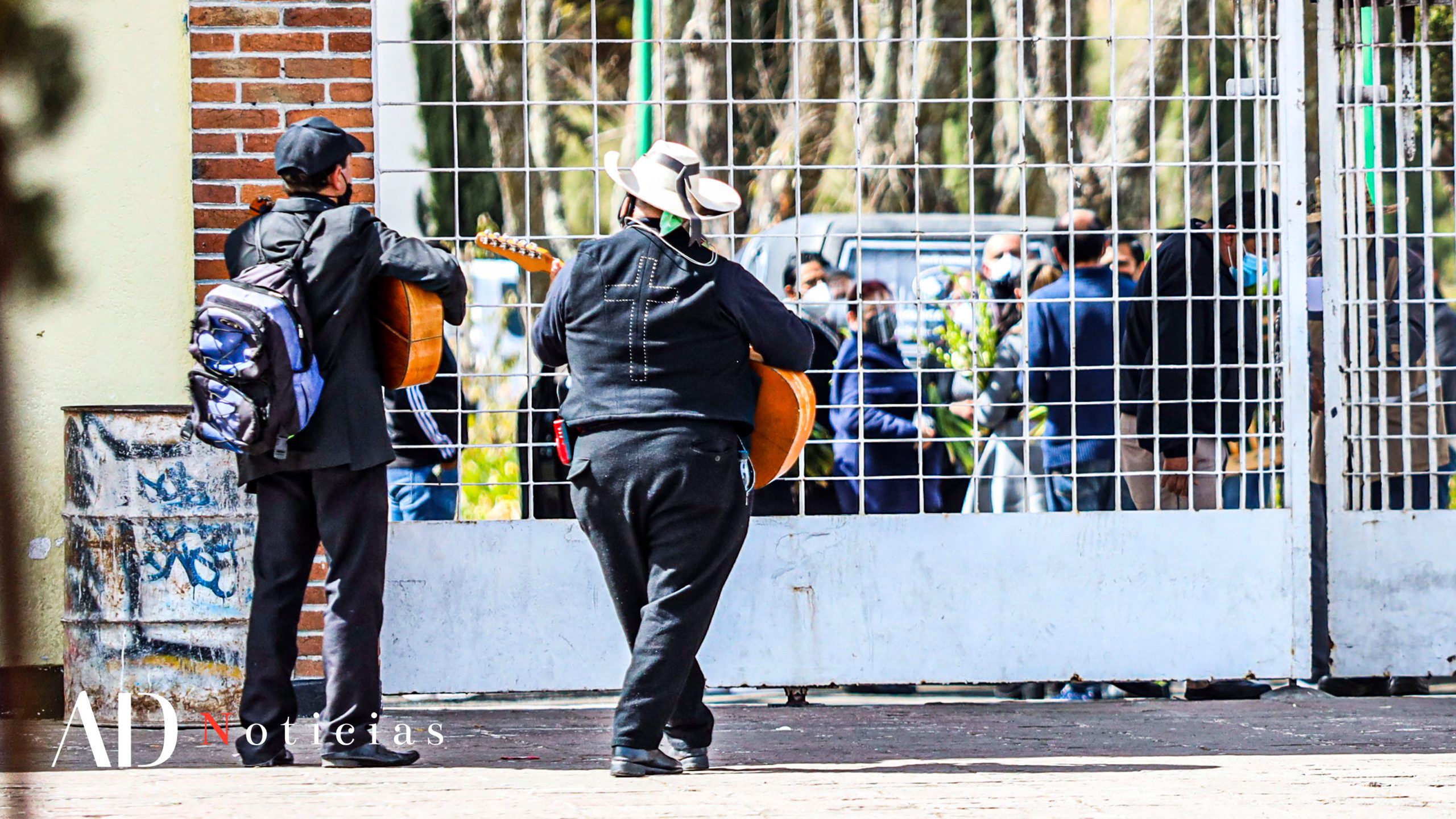 Derivado de la contingencia, el acceso a los panteones es limitado por eso ellos permanecen en los accesos principales para dar el último adiós a la gente, con canciones tradicionales y algunas composiciones que han hecho estos meses.