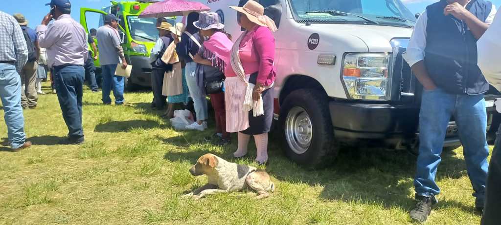 Ahí ya la esperaba poco público, que entre gritos le exigieron mejorar sus caminos, que están en pésimas condiciones.
