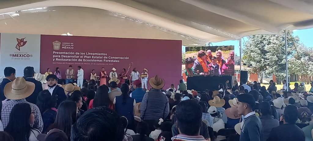 La Presentación de los Lineamientos para Desarrollar el Plan Estatal de Conservación y Restauración comenzó con una ceremonia mazahua, que marcó la bienvenida de todos los pueblos originarios de la región.