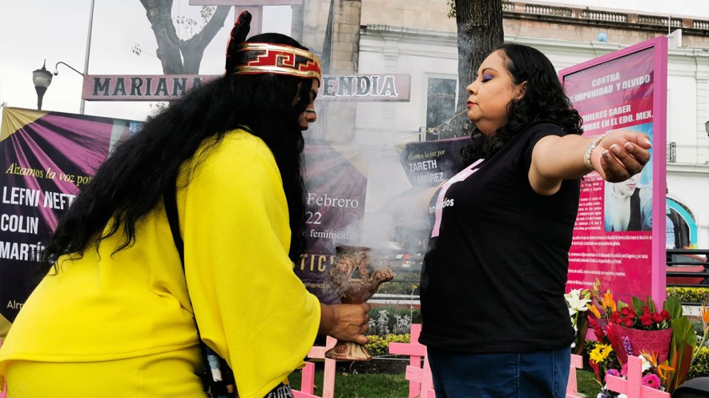 Familiares de víctimas y feministas protestaron este viernes en Toluca para exigir justicia por los feminicidios impunes en el Estado de México. Con antiofrendas y ceremonias recordaron a las mujeres que fueron asesinadas.