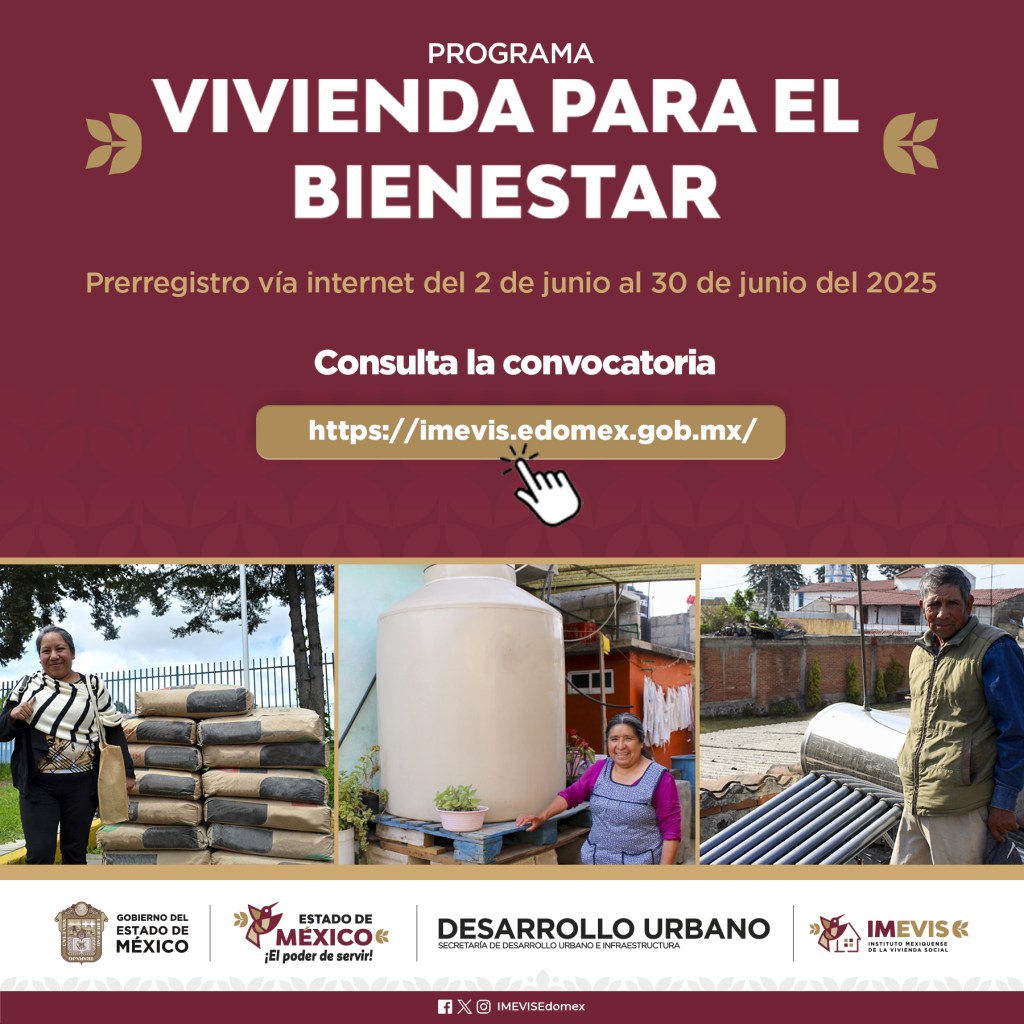 El gobierno del Estado de México (Edomex) activó el programa Vivienda para el Bienestar 2025. A través del Instituto Mexiquense de la Vivienda Social (Imevis), las y los mexiquenses podrán solicitar calentadores solares, tinacos, paneles solares y otros apoyos gratuitos para mejorar sus viviendas.