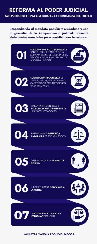 - Elección por voto popular de todos los miembros de la SCJN y del nuevo Tribunal de Disciplina Judicial.